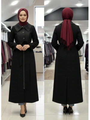 YAKASI KÜRK DETAYLI KABAN - Siyah