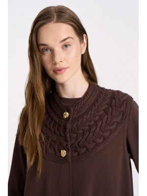 YAKASI SAÇ ÖRGÜLÜ YELEK - Kahverengi
