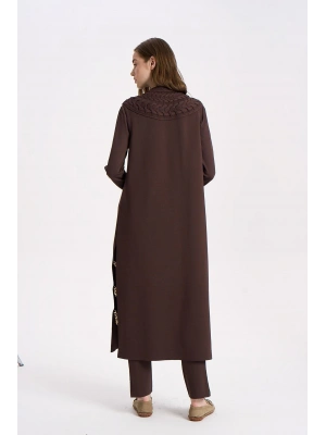 KOLLARI VE CEBİ DUBLE UZUN HIRKA - Kahverengi