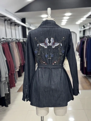 YAKASI VE SIRTI KELEBEK DESEN İŞLEMELİ KAP - Siyah