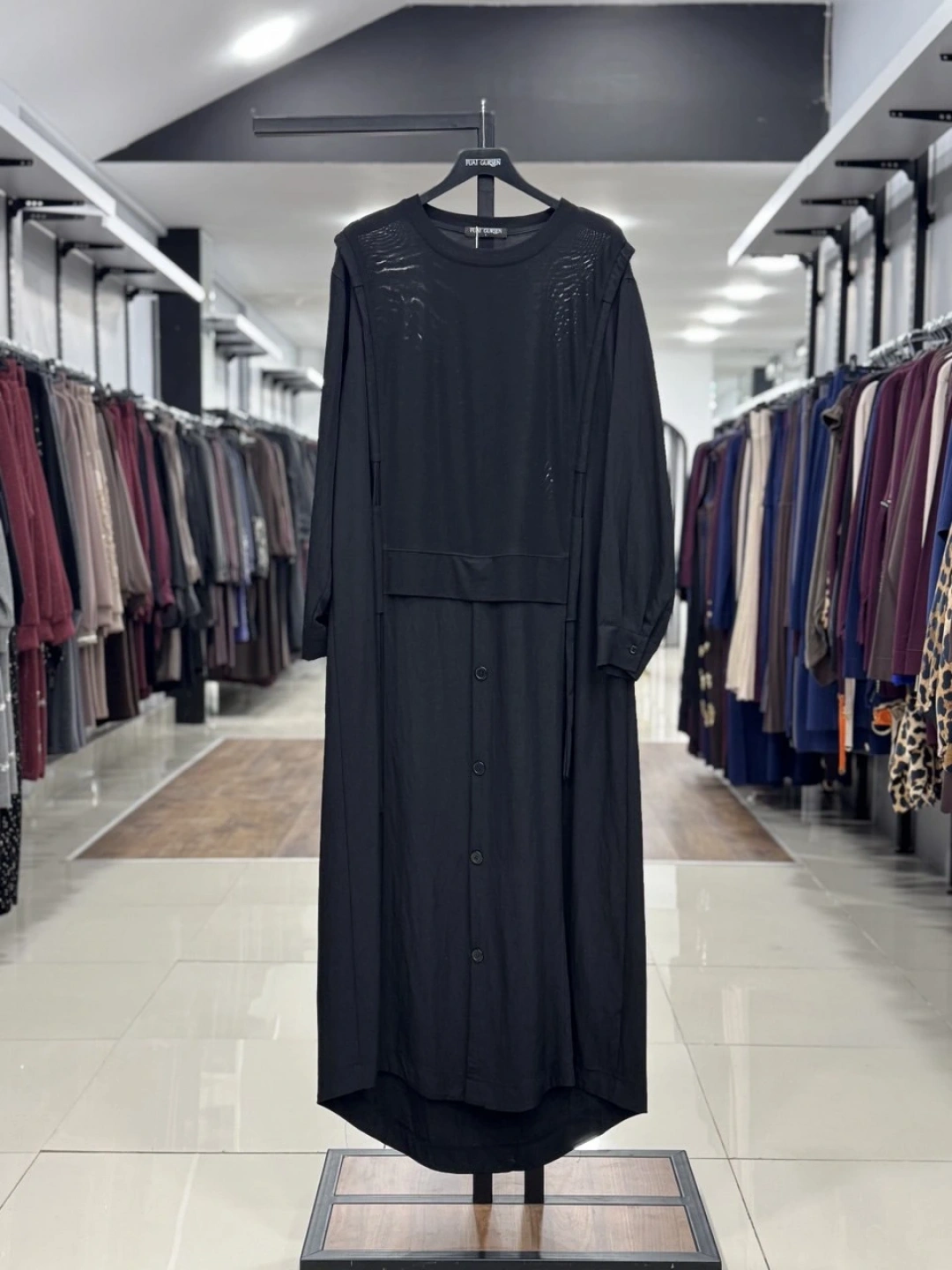 ÜST VE YAKA DETAYI FARKLI ELBİSE - Siyah