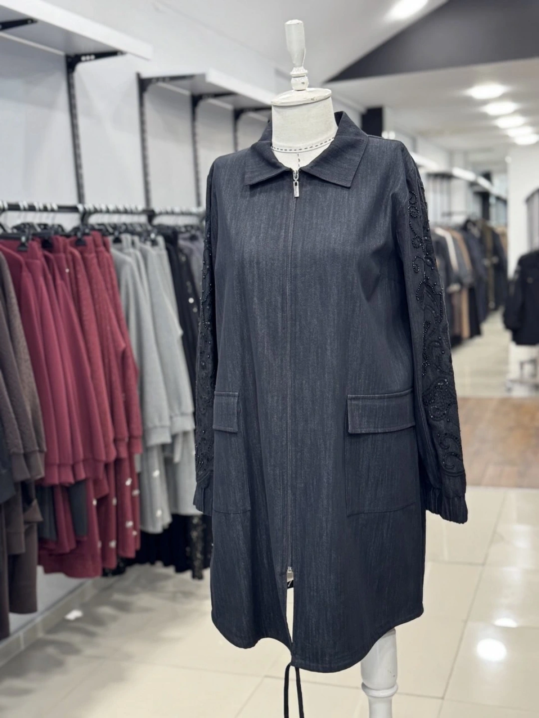 YAKASI VE SIRTI KELEBEK DESEN İŞLEMELİ KAP - Lacivert