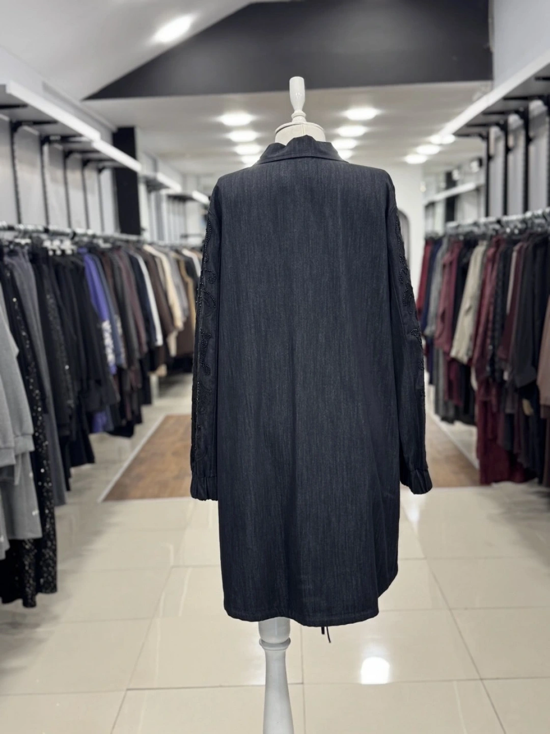 YAKASI VE SIRTI KELEBEK DESEN İŞLEMELİ KAP - Siyah