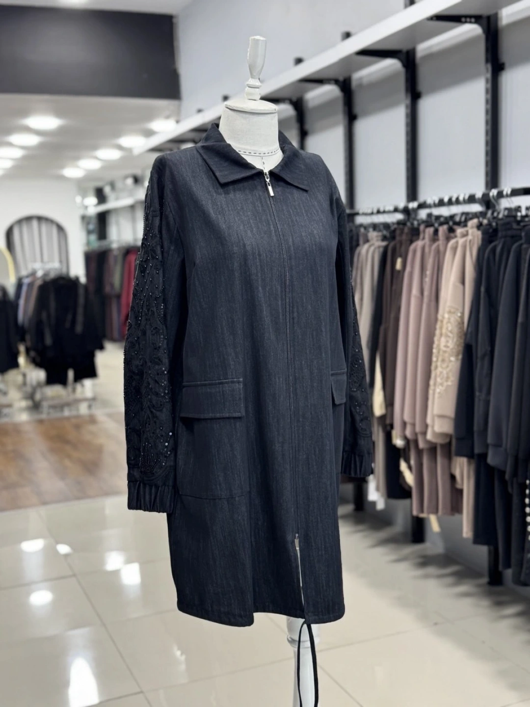 YAKALARI PUL PAYET İŞLEMELİ KEMERLİ FERMUARLI KAP - Siyah