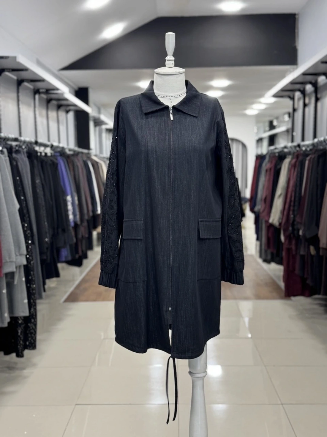 YAKA VE KOLLARI GÜPÜRLÜ KAP - Siyah
