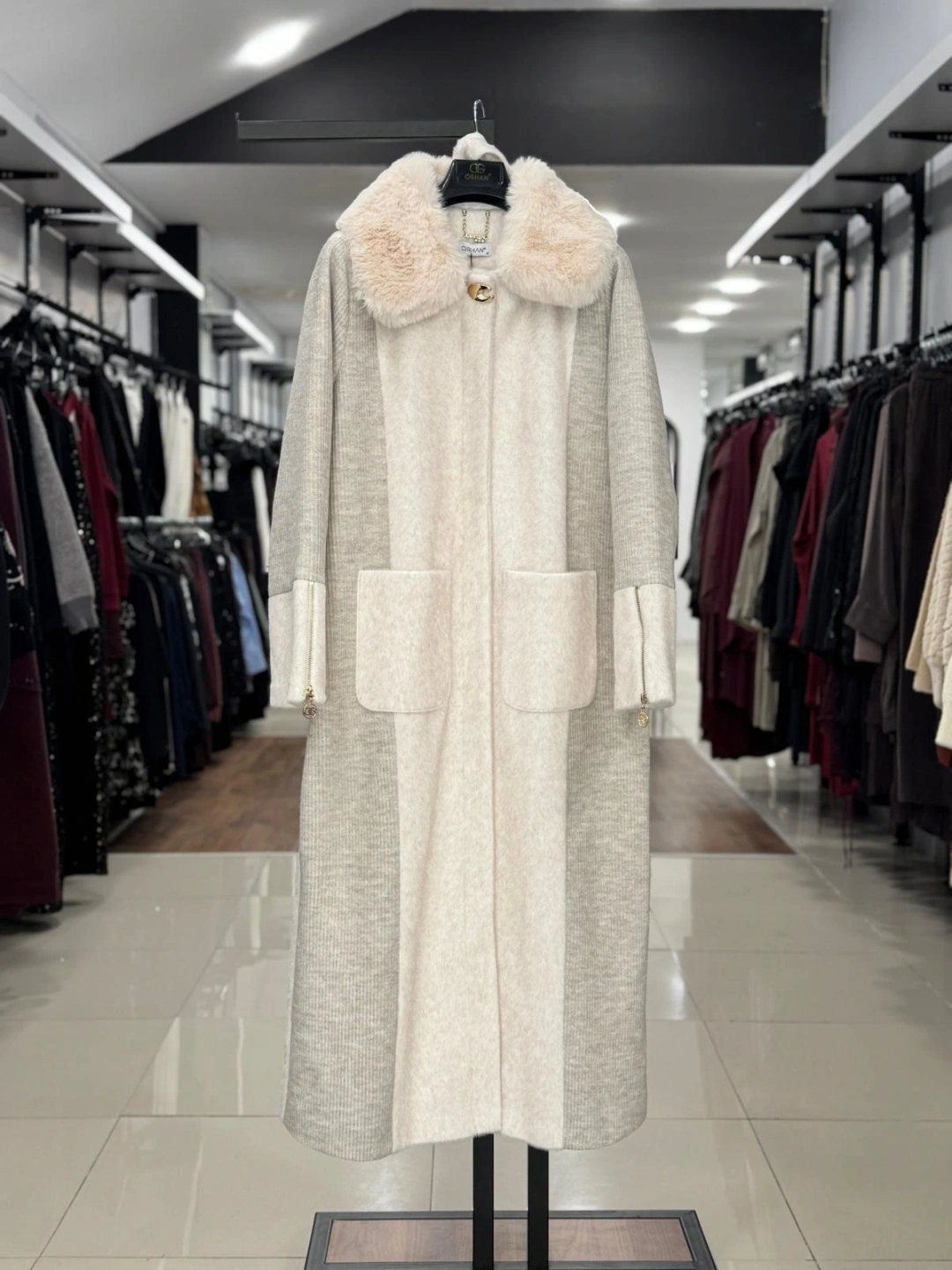 ÖNDEN DÜMELİ VE CEPLİ ANGORA KABAN - Bej
