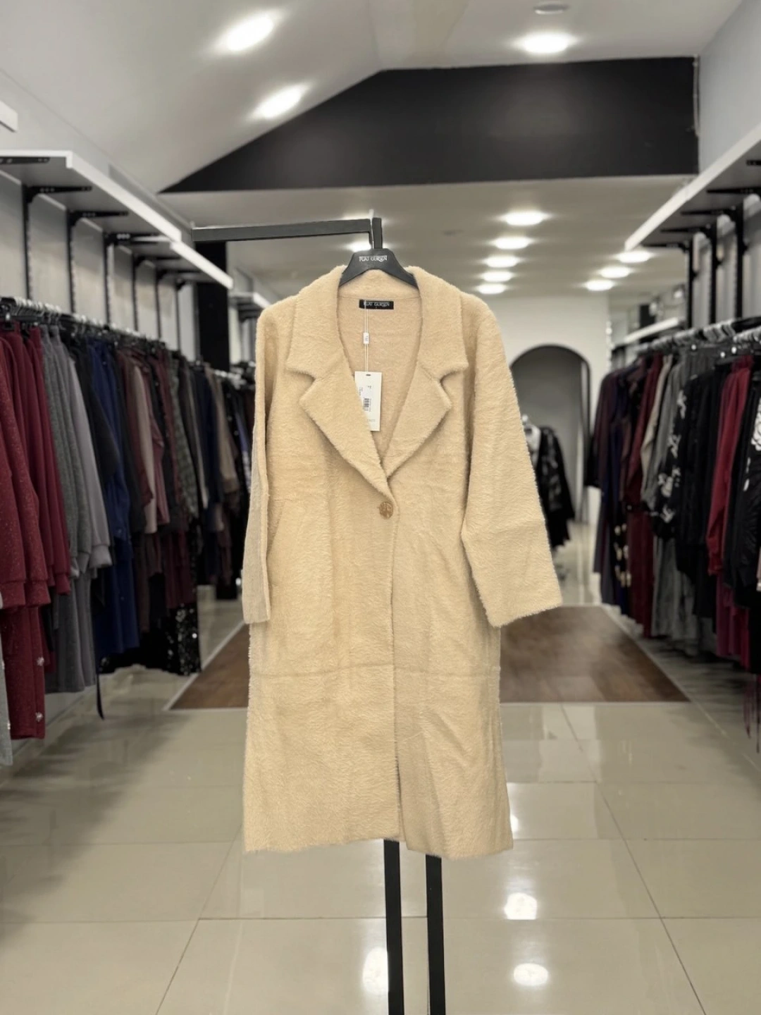 ÖNDEN DÜMELİ VE CEPLİ ANGORA KABAN - Bej