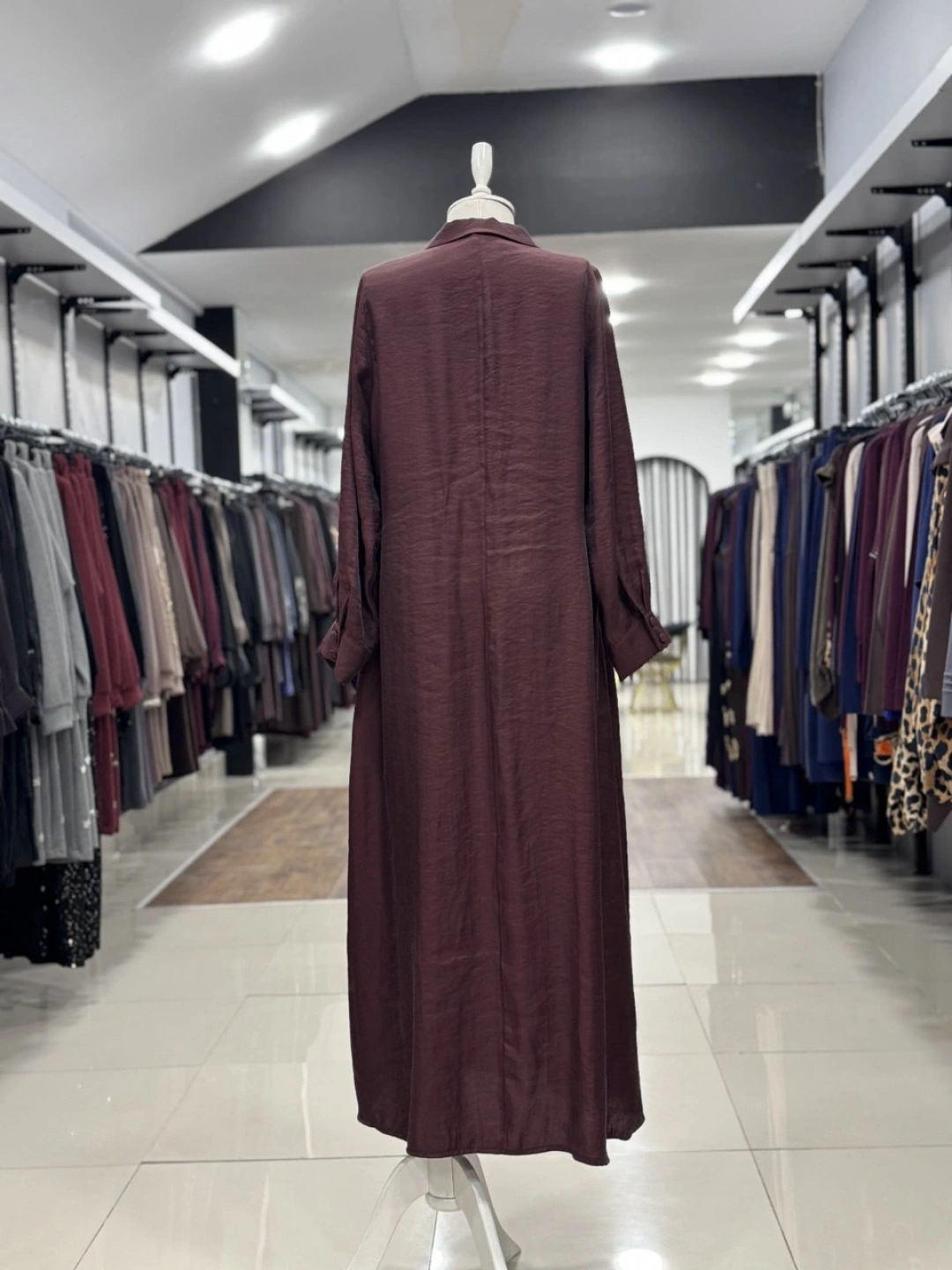 DÜĞME VE CEP DATAYLI ELBİSE - Kahverengi