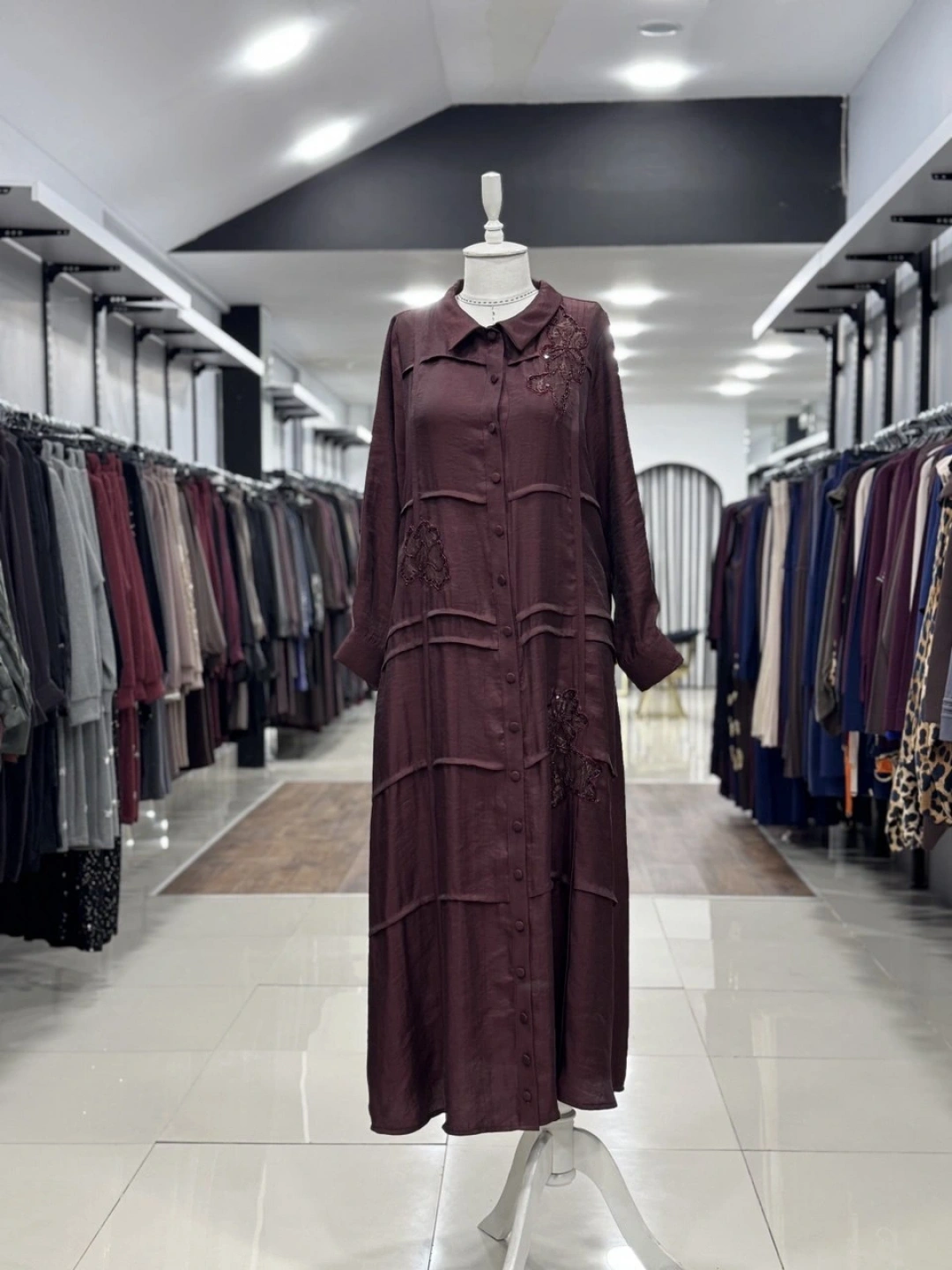 ÜST VE YAKA DETAYI FARKLI ELBİSE - Kahverengi