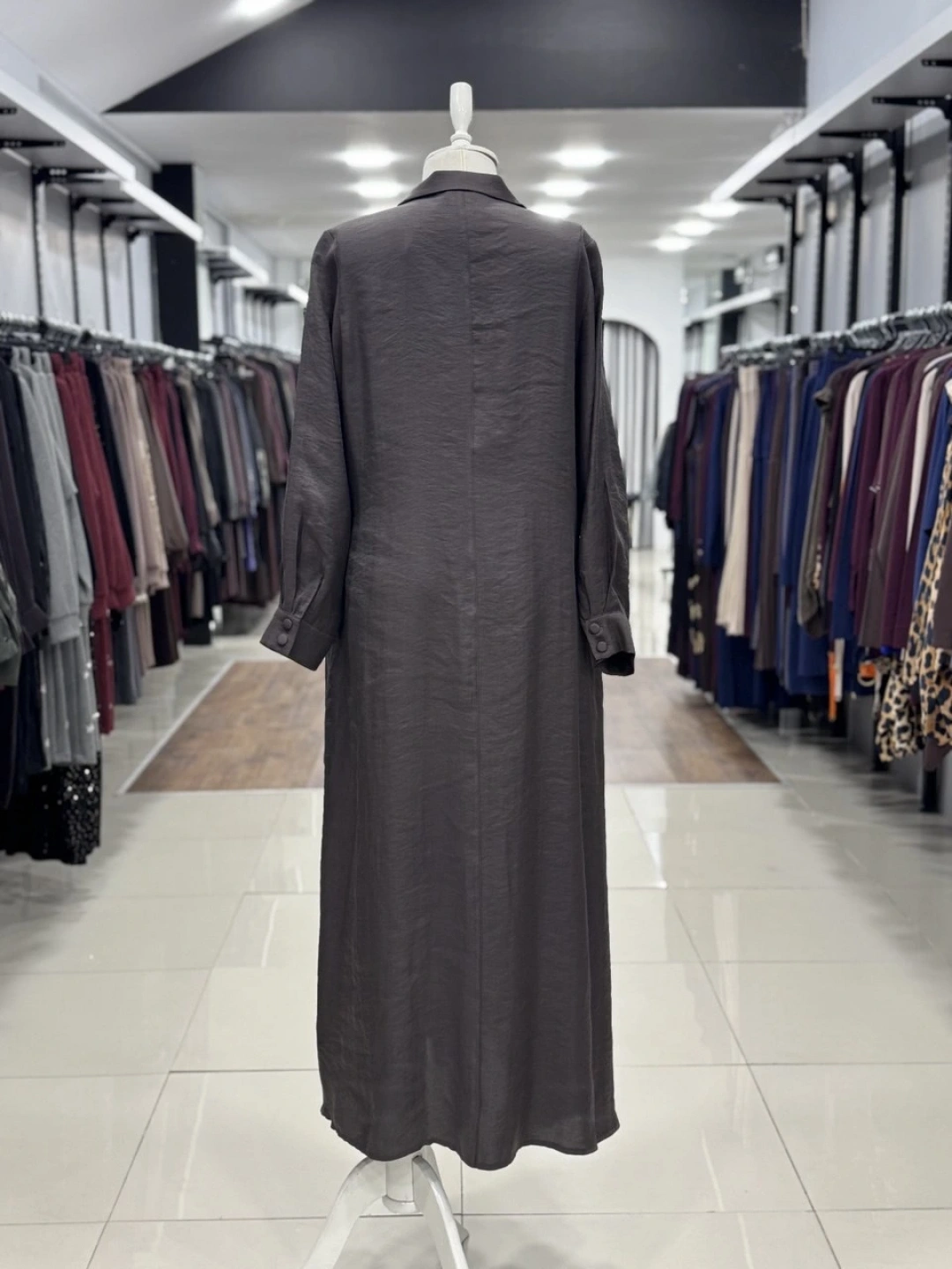 DÜĞME VE CEP DATAYLI ELBİSE - Kahverengi