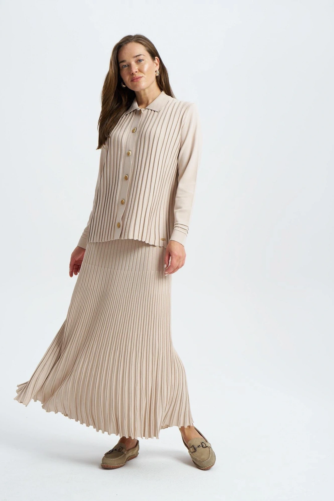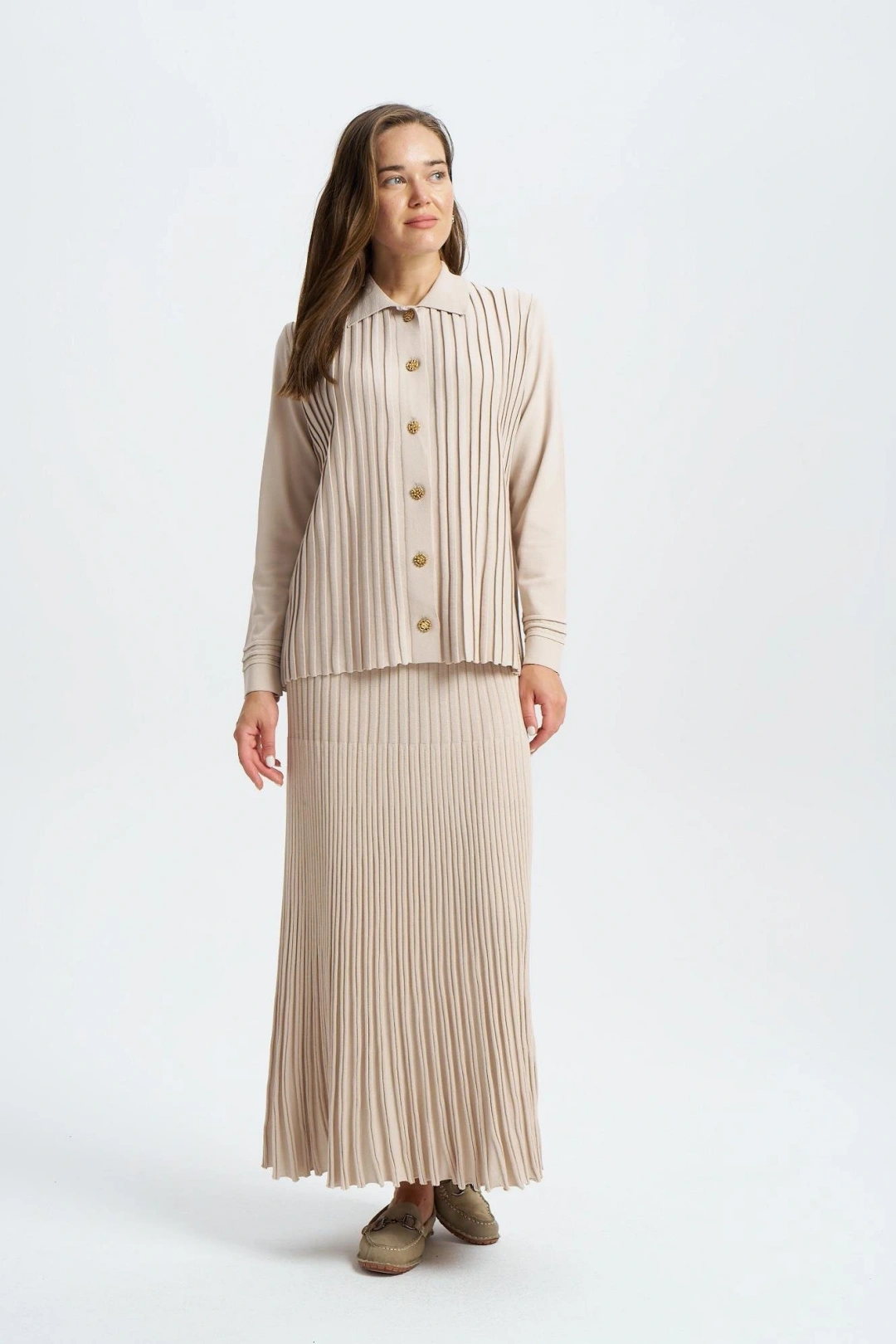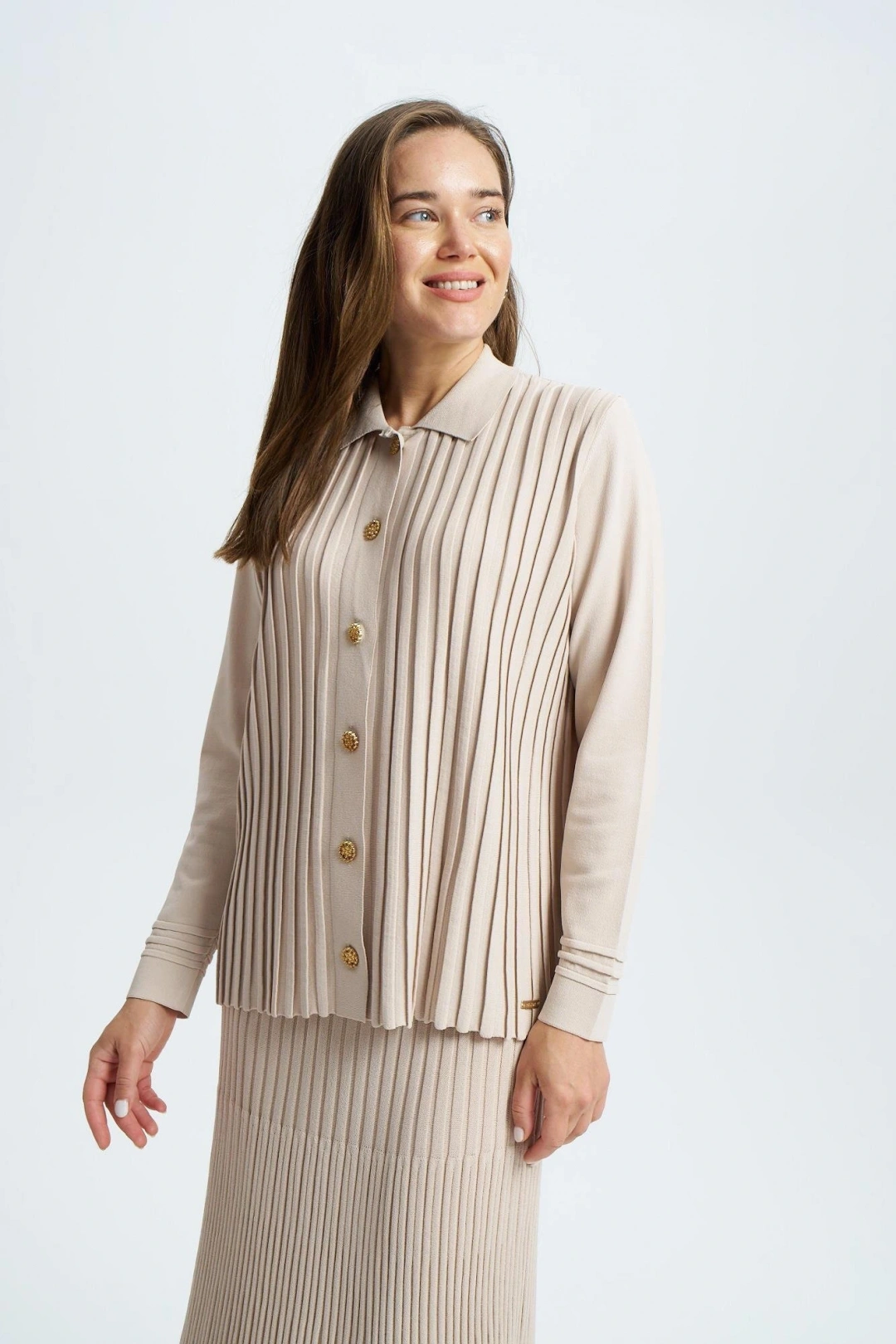 ÖNÜ KOMPLE BEKLETMELİ HIRKA - Bej