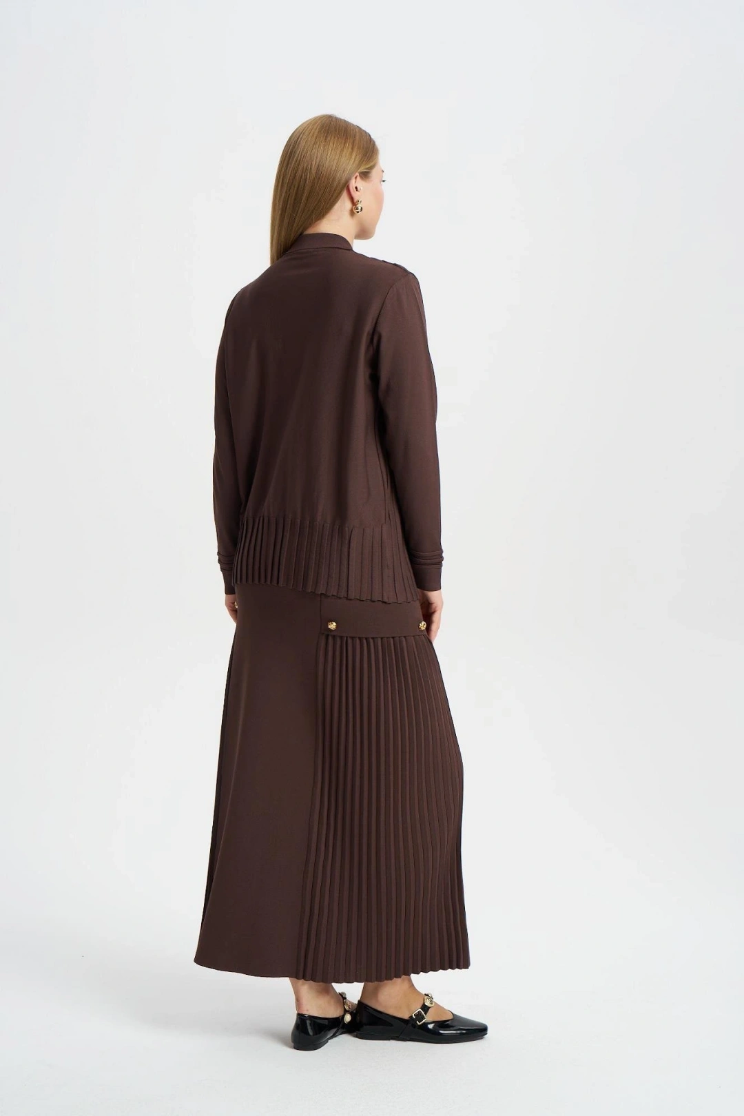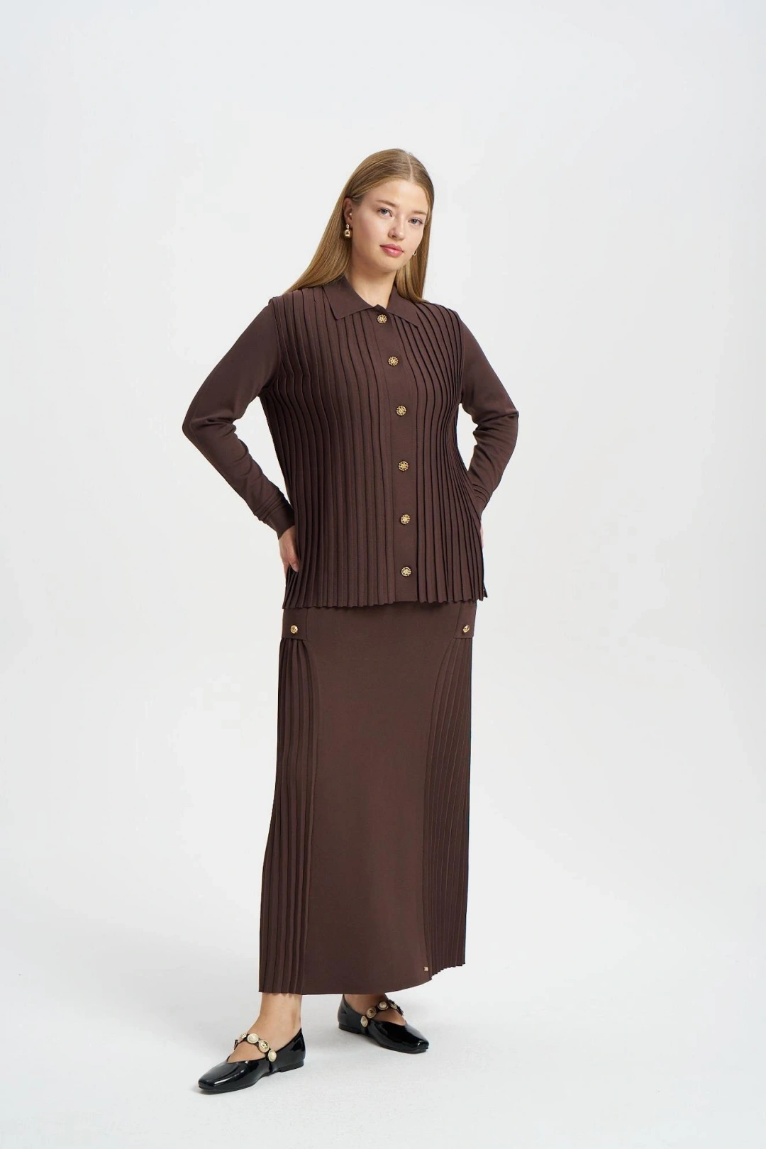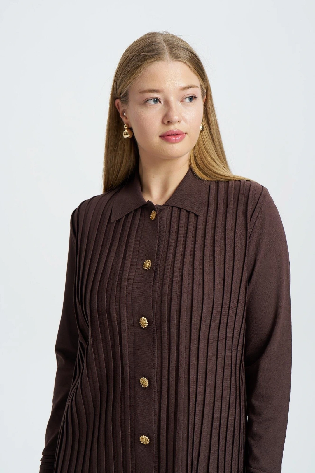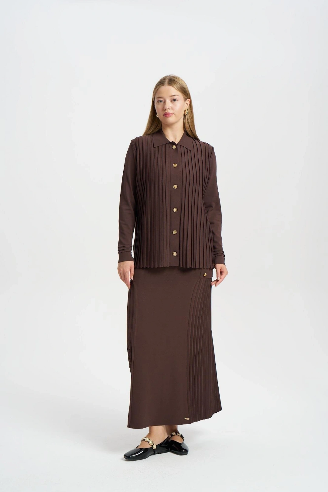 ÖNÜ KOMPLE BEKLETMELİ HIRKA - Kahverengi