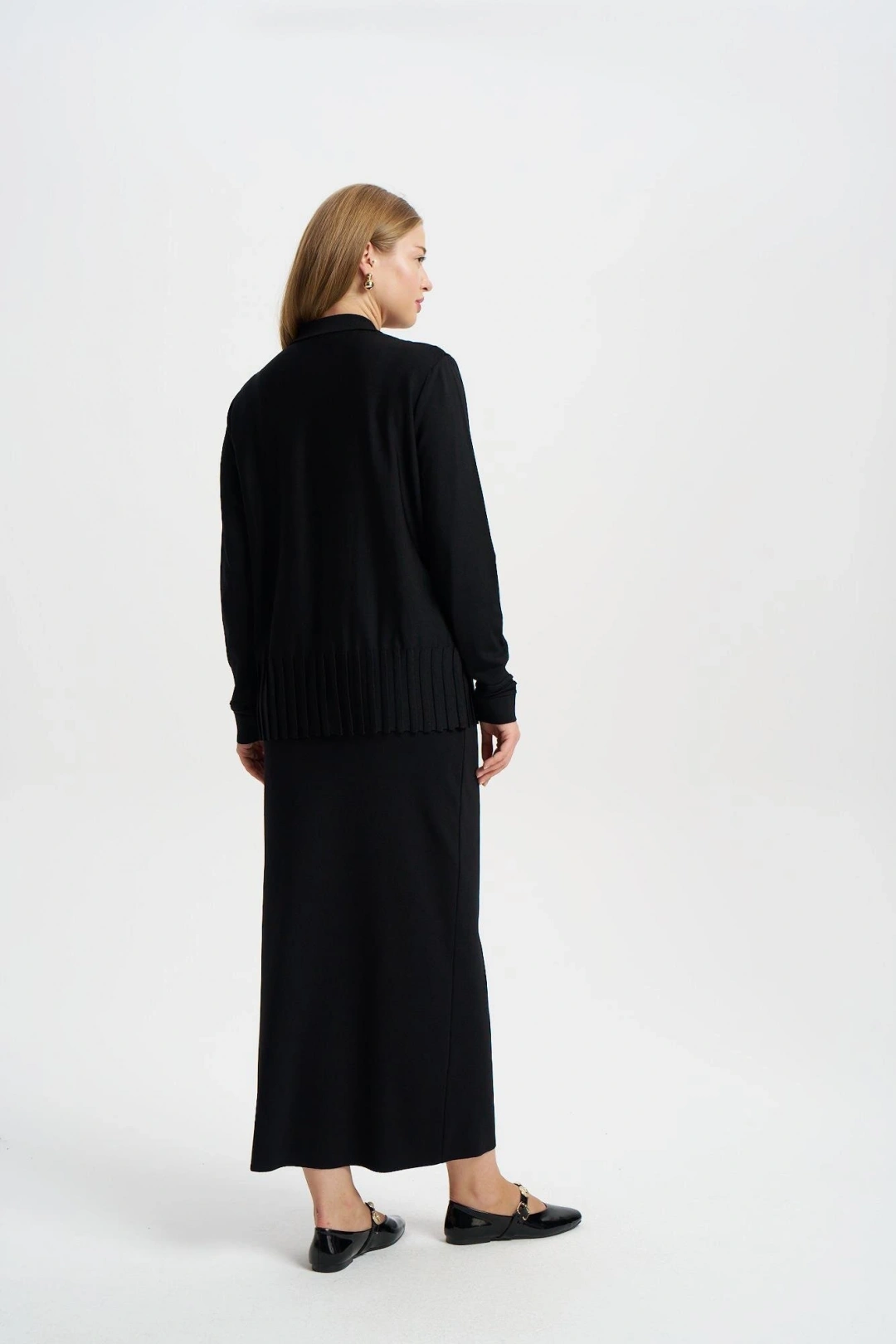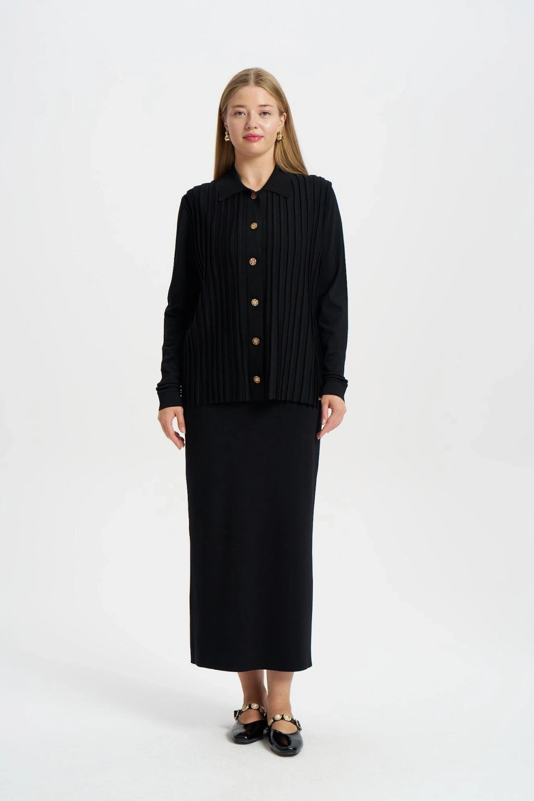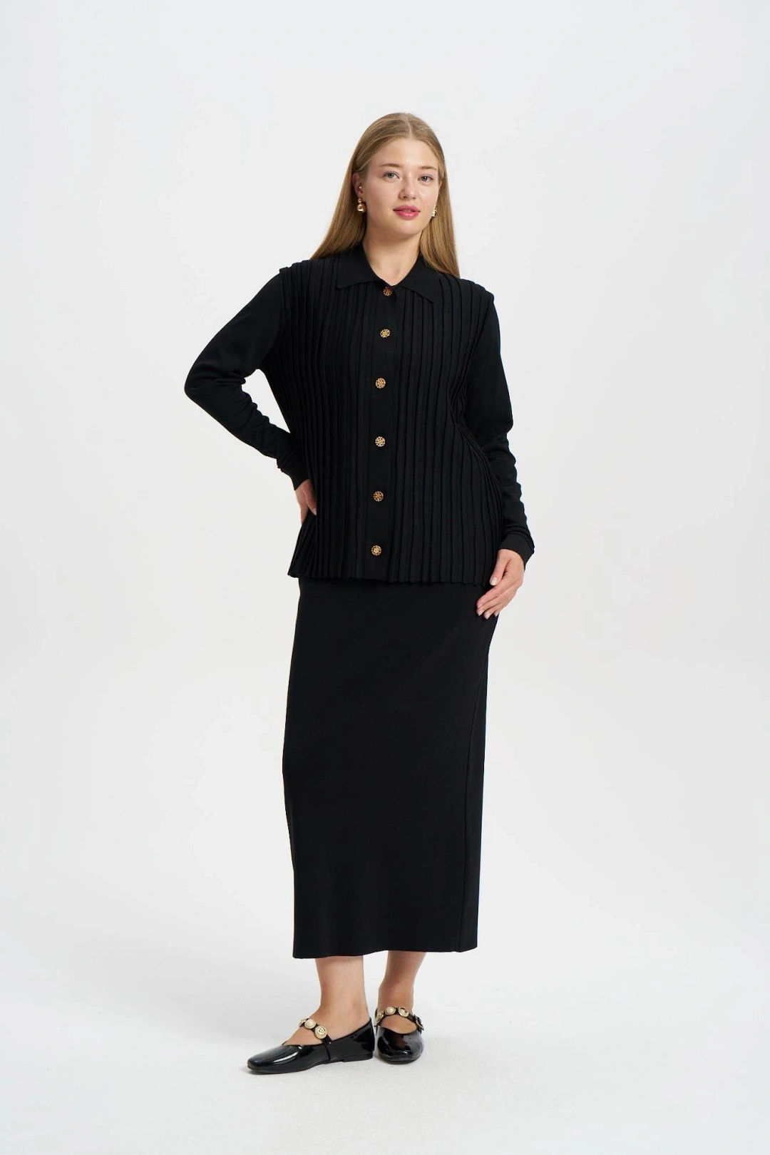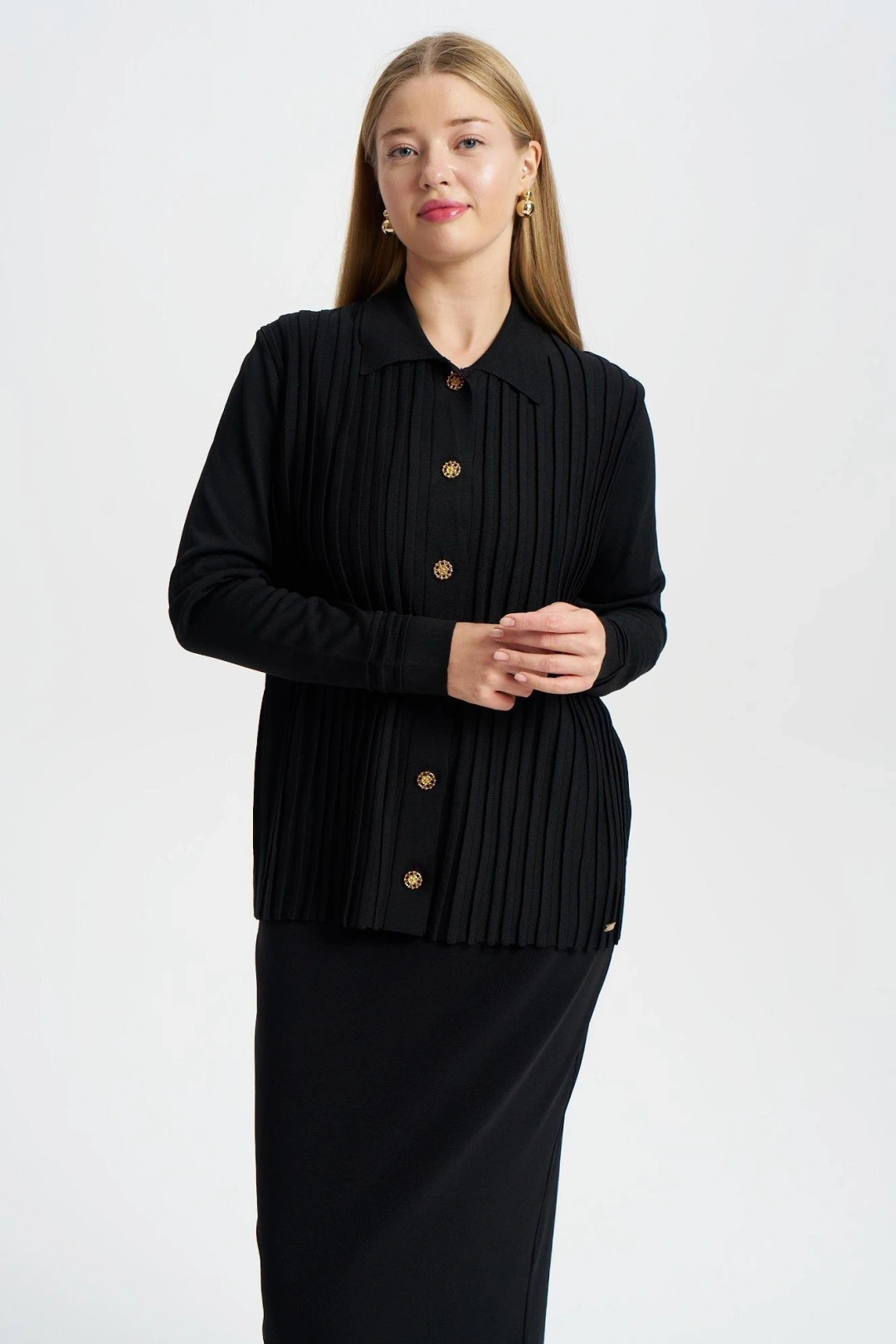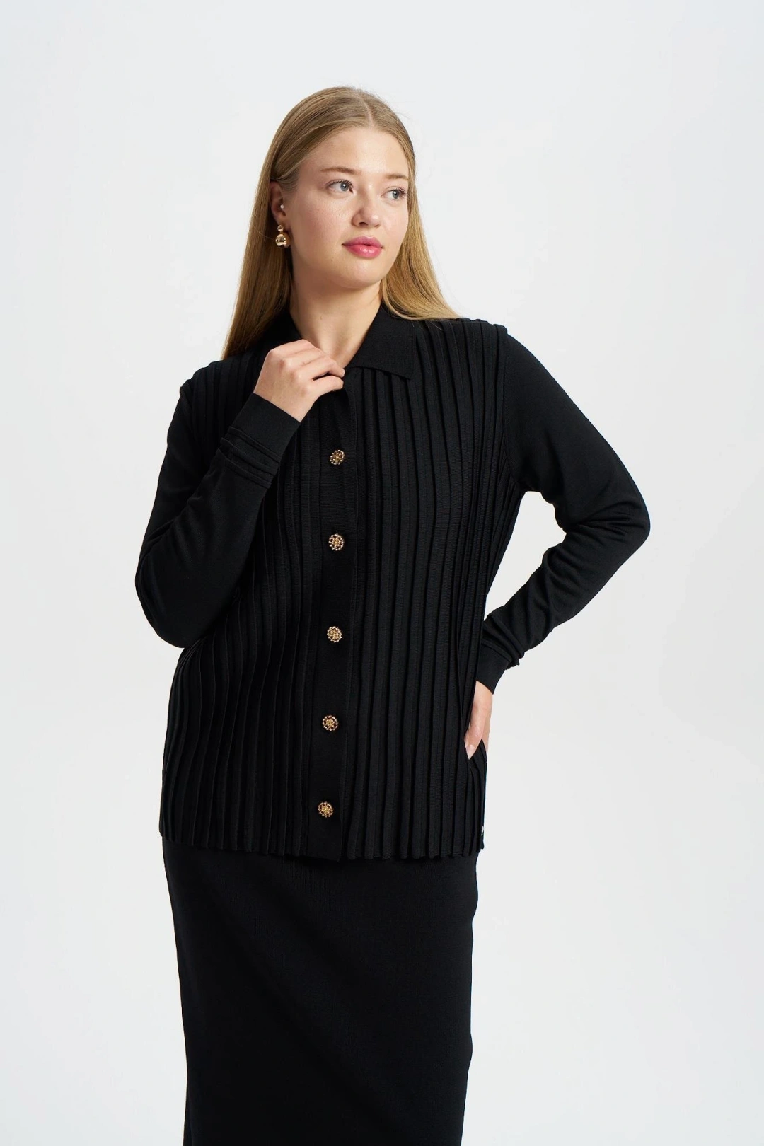 ÖNÜ KOMPLE BEKLETMELİ HIRKA - Siyah