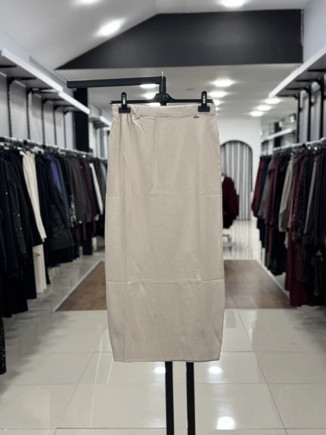 RİP ÖRGÜ PİLİSELİ RAYON ETEK - Camel