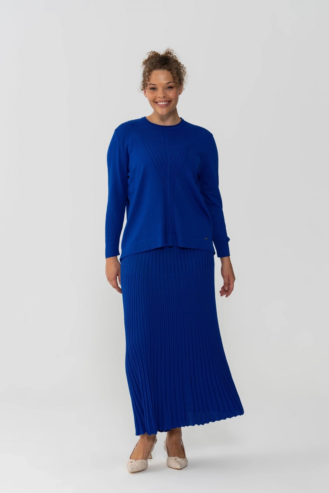 RİP ÖRGÜ PİLİSELİ RAYON ETEK - Saks Mavisi