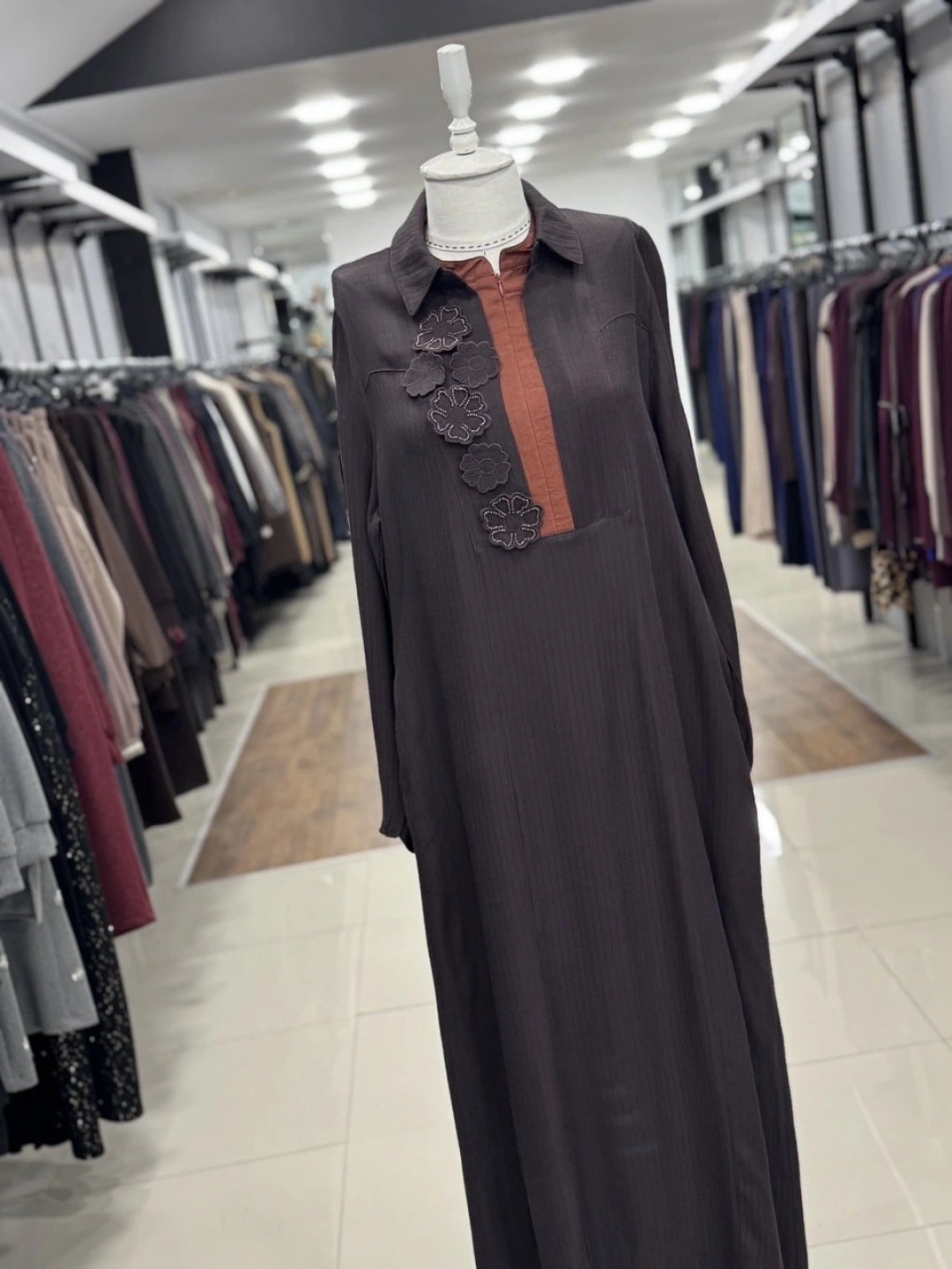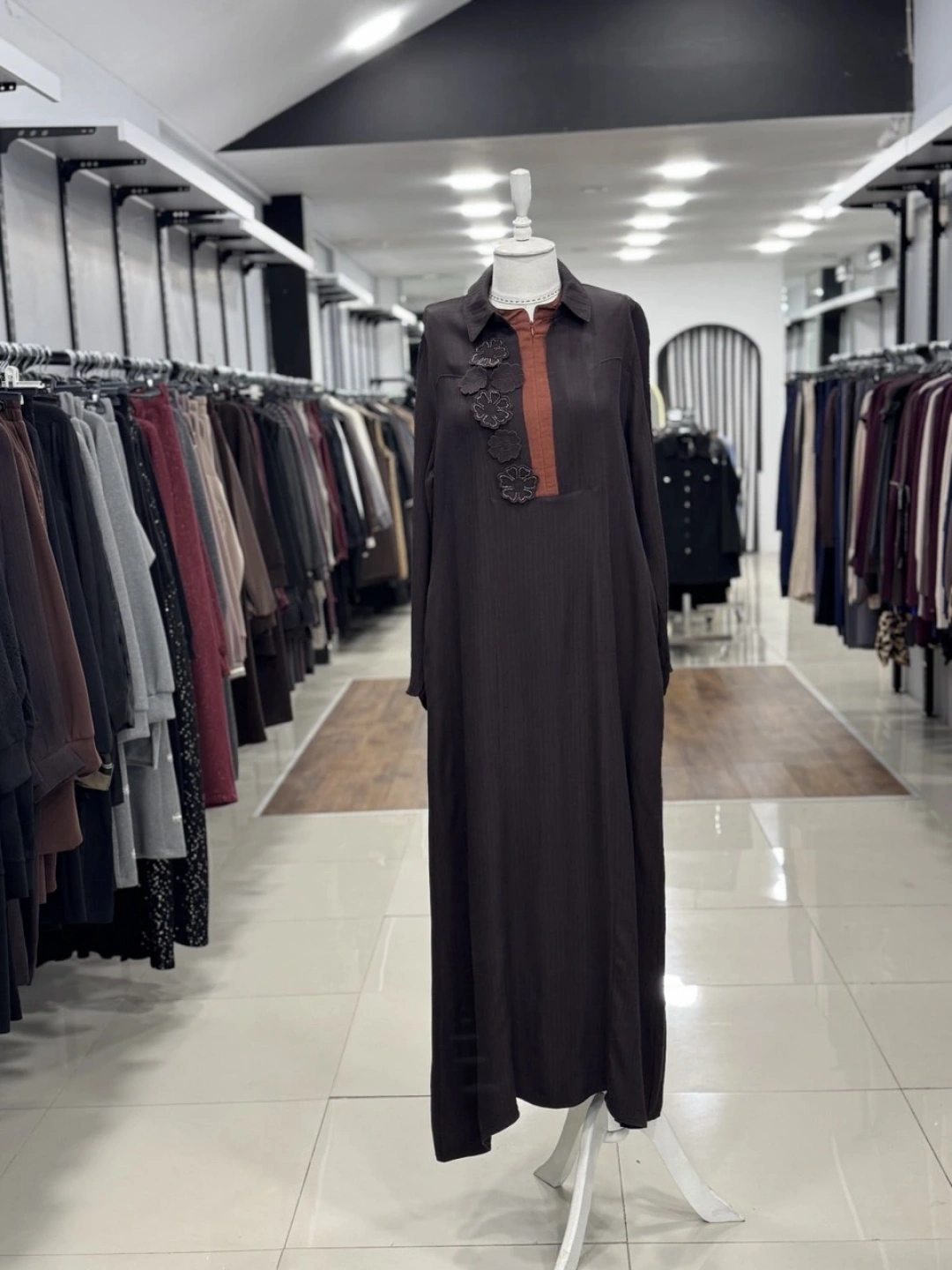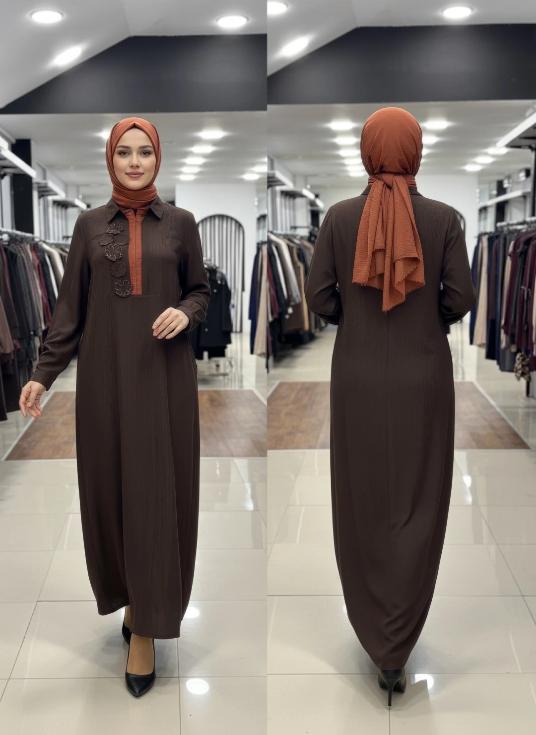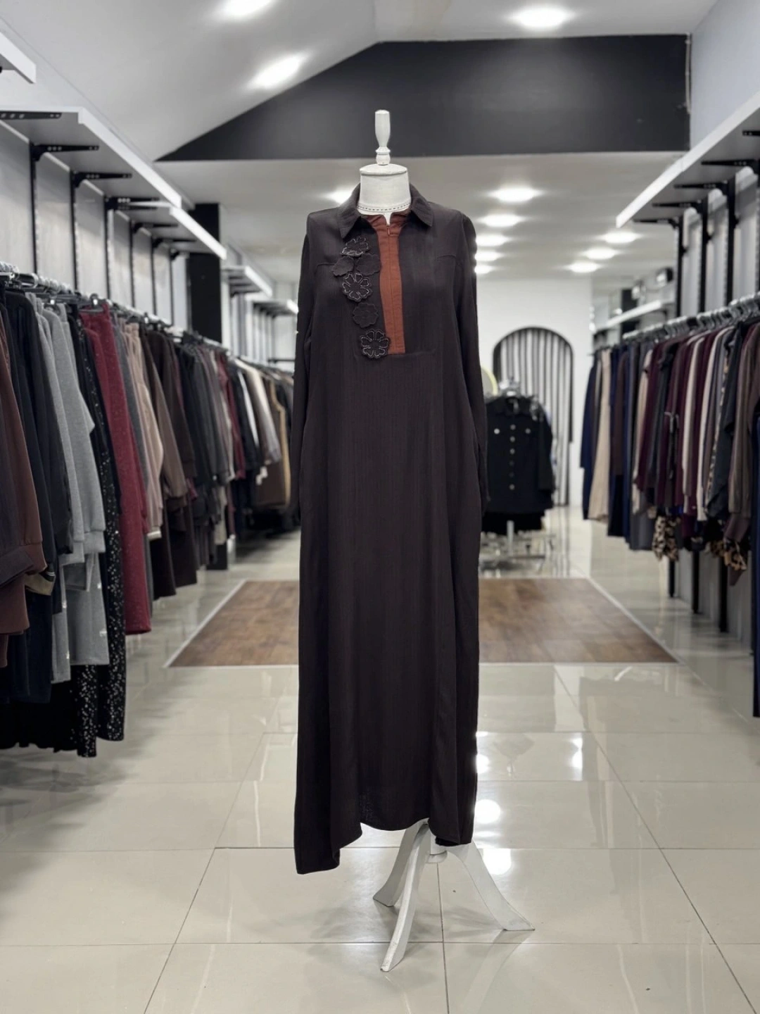 ÜST VE YAKA DETAYI FARKLI ELBİSE - Kahverengi