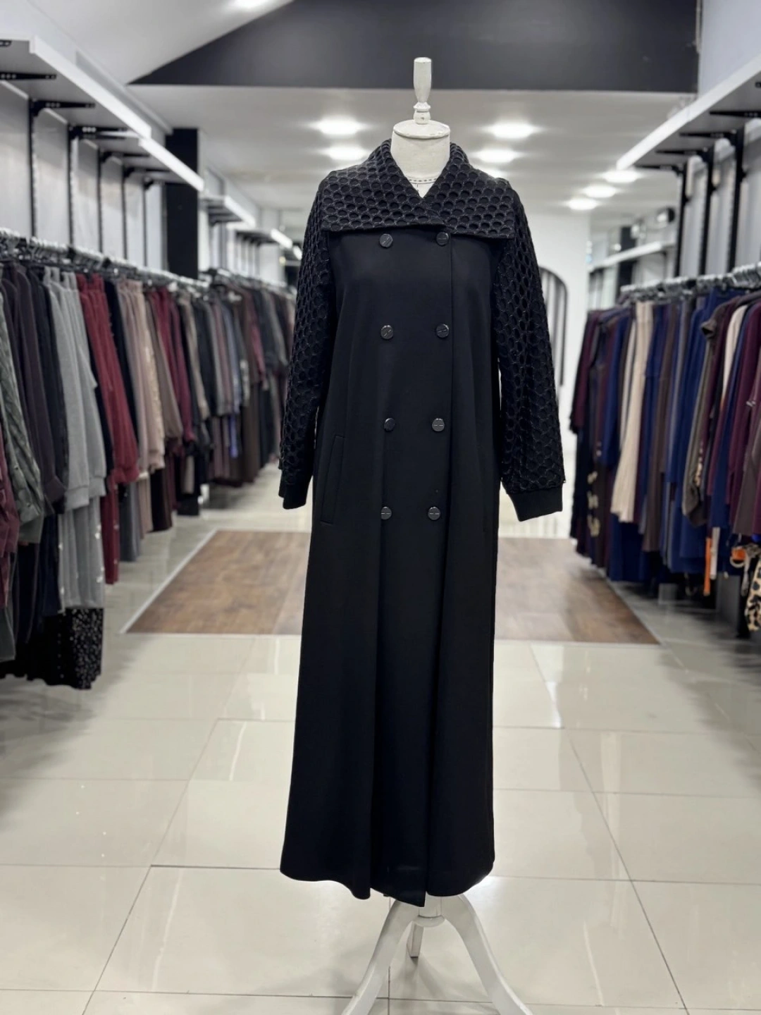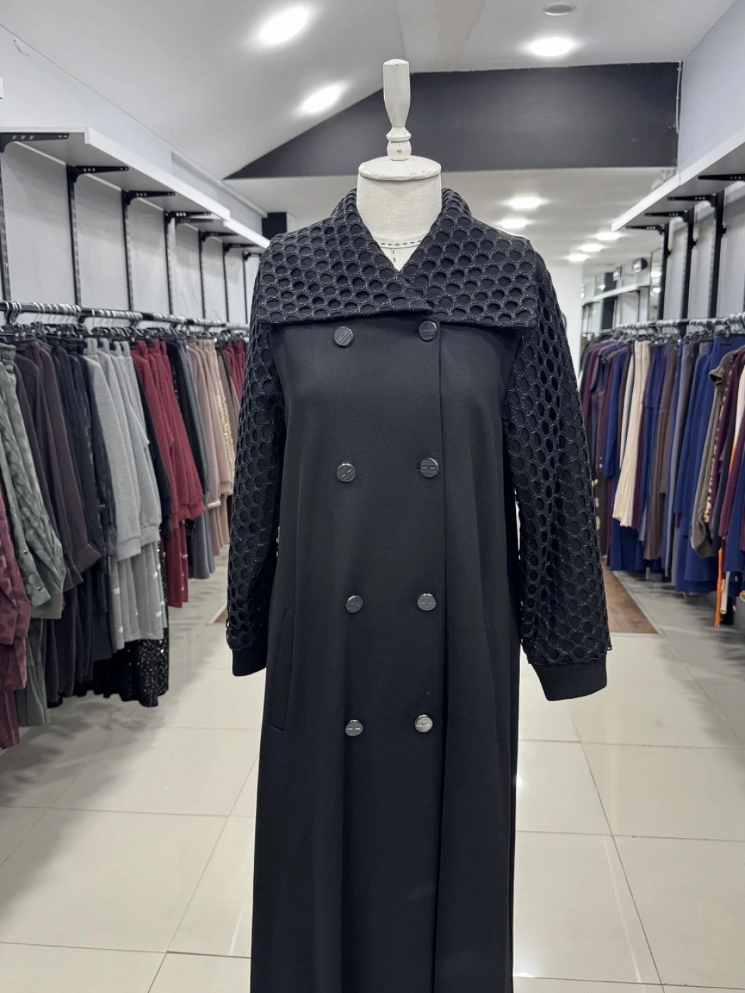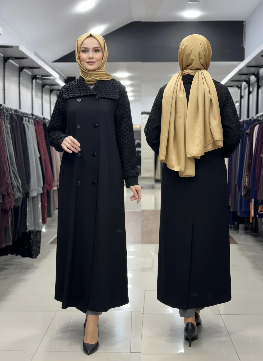 YAKA VE KOLLARI GÜPÜRLÜ KAP - Siyah