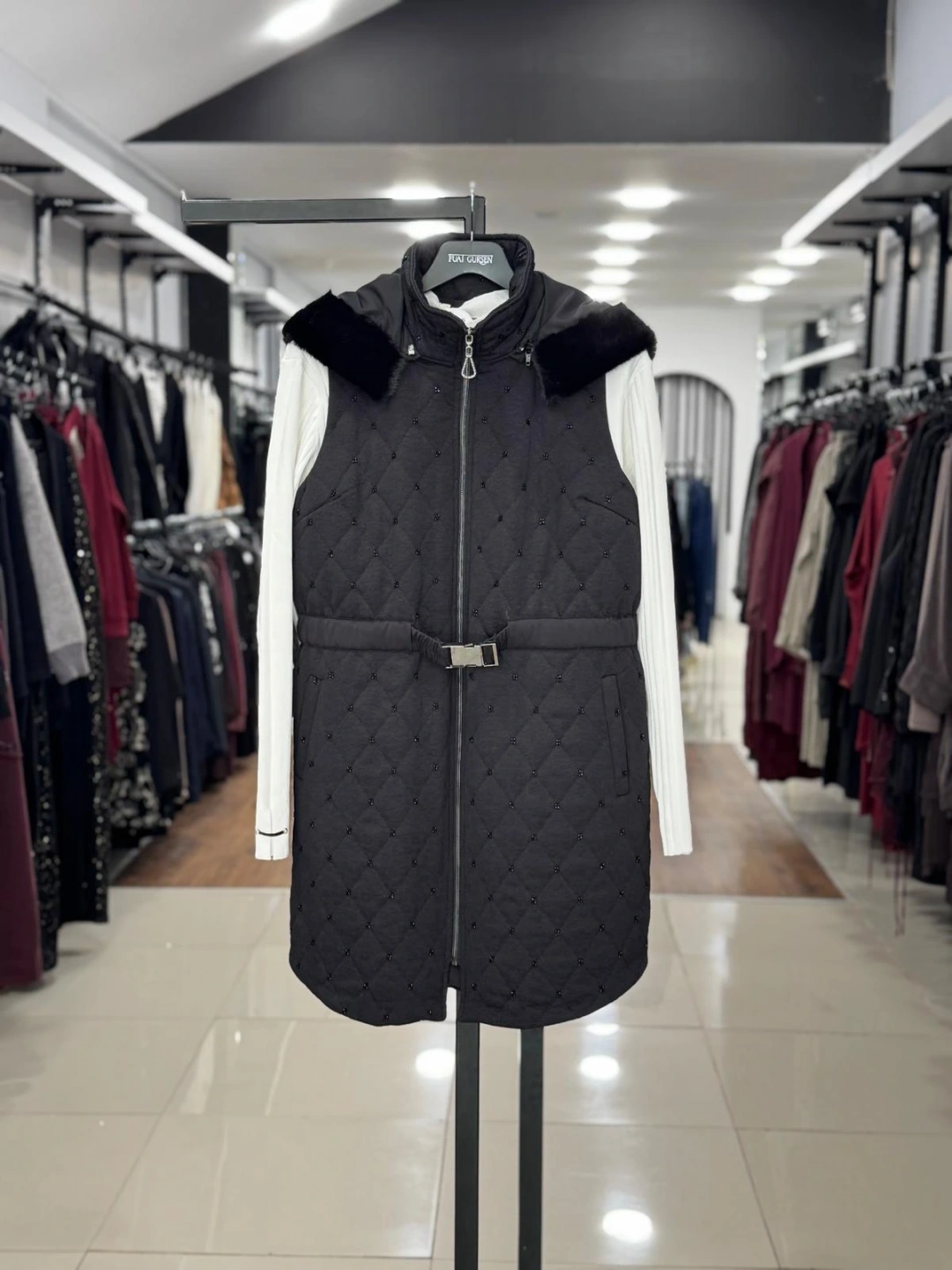 YAKASI ÇIKABİLEN KÜRKLÜ YELEK - Siyah