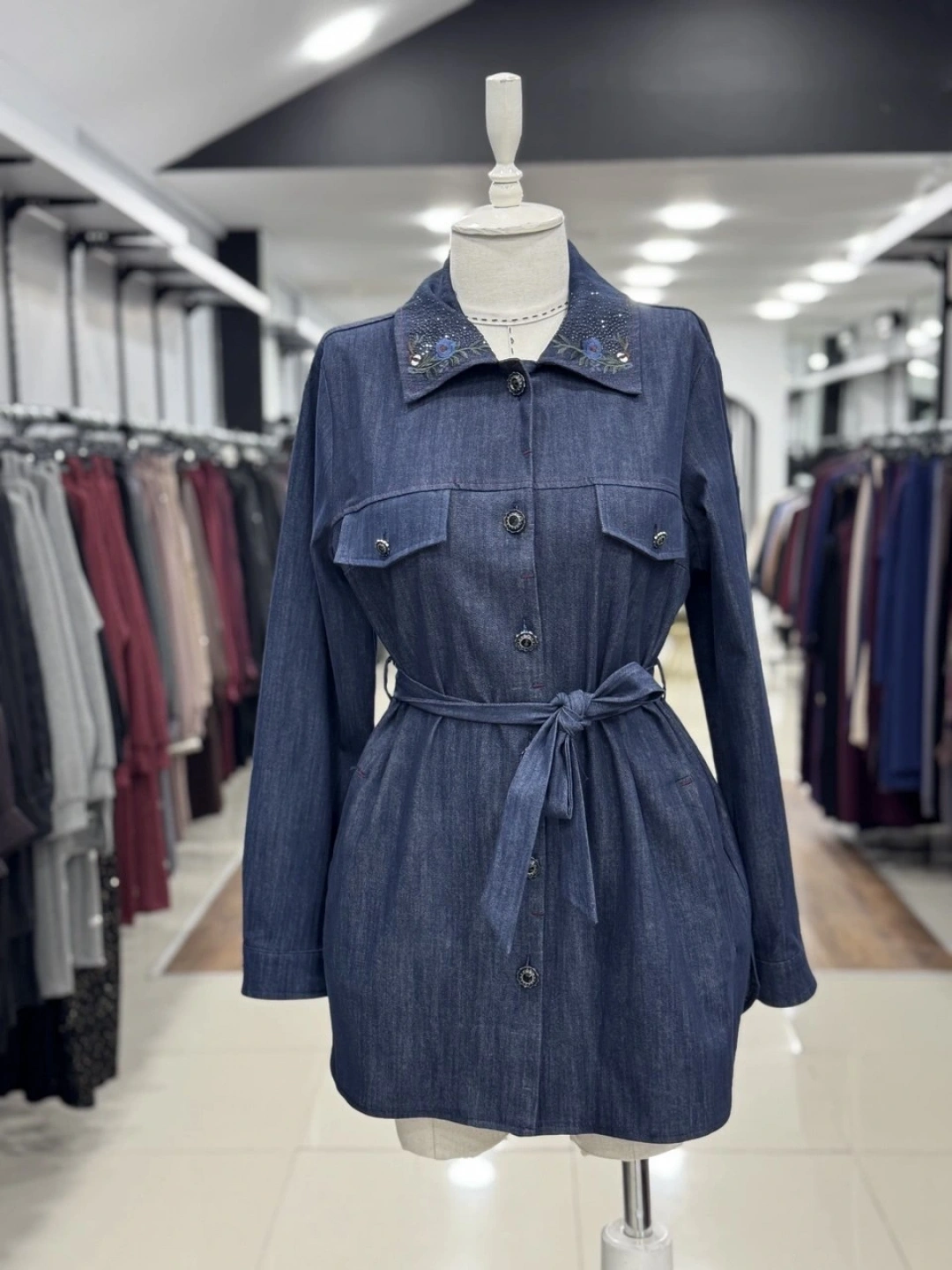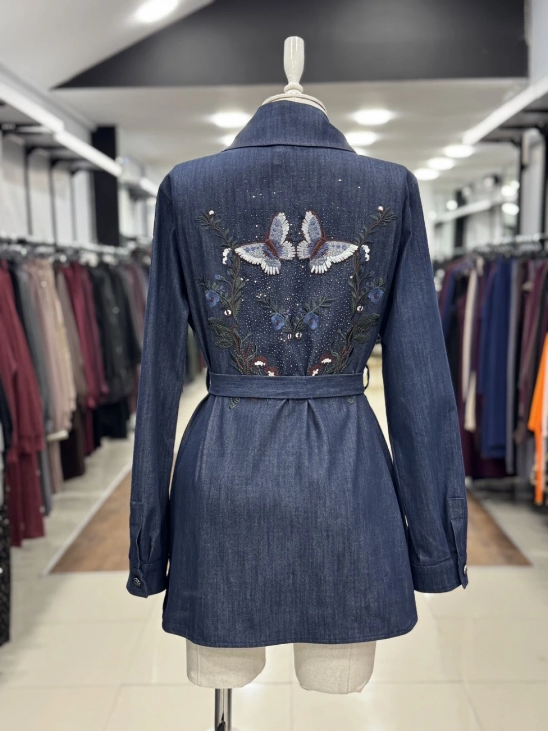 YAKASI VE SIRTI KELEBEK DESEN İŞLEMELİ KAP - Lacivert
