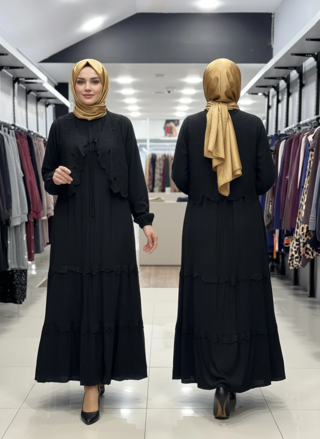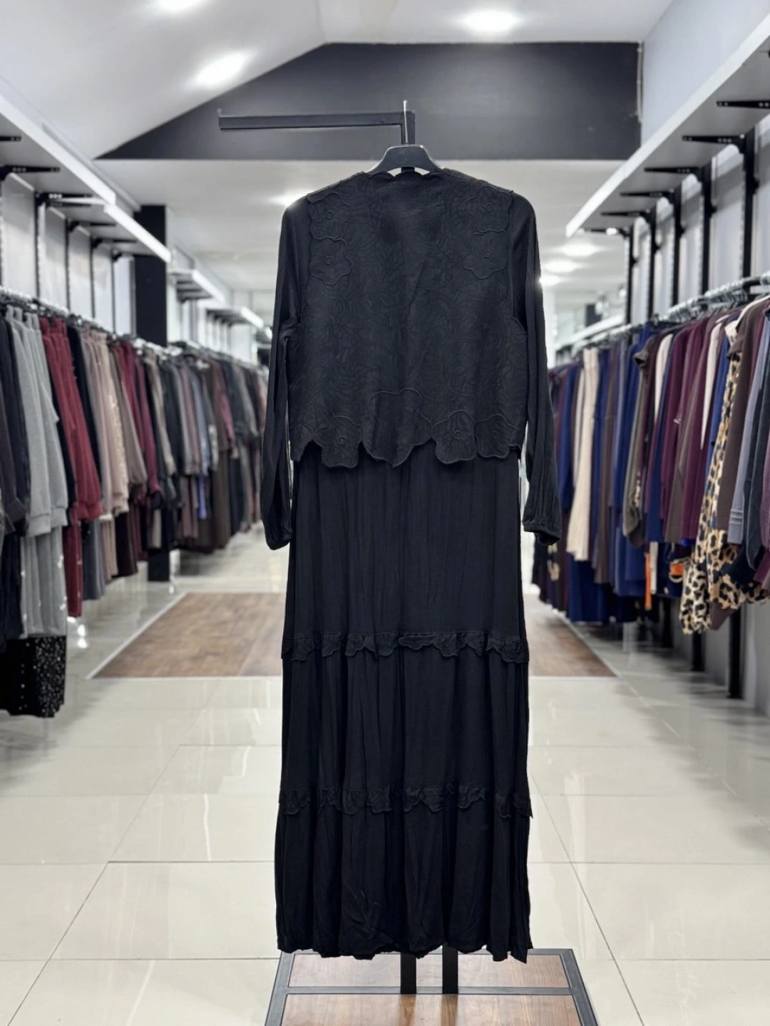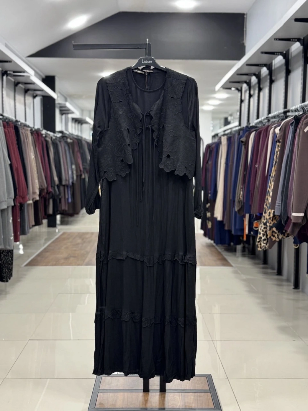 YELEK DETAYLI İKİLİ ELBİSE - Siyah